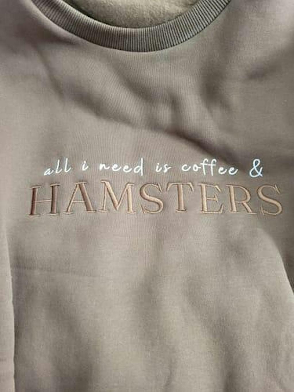 Cozy up in this soft, stylish Cafe Brown sweatshirt featuring an elegant embroidered “All I Need Is Coffee & Hamsters” slogan—because lets be real, it's the truth!