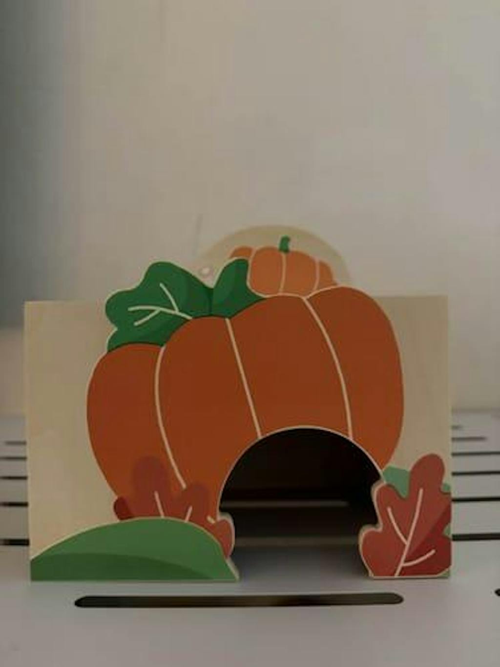 Bring seasonal charm to your pet’s habitat with this hide featuring a cheerful pumpkin accent on the side. Made from pet-safe wood, it offers a spacious and secure spot for resting or nesting while adding a festive fall touch to any enclosure.