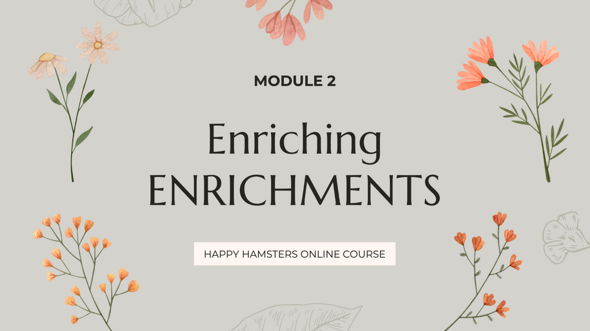 - Module 2: Enriching Enrichments- In this module you'll learn about dried herbs & flowers, scatter feeding, burrowing, chew toys, and much more!