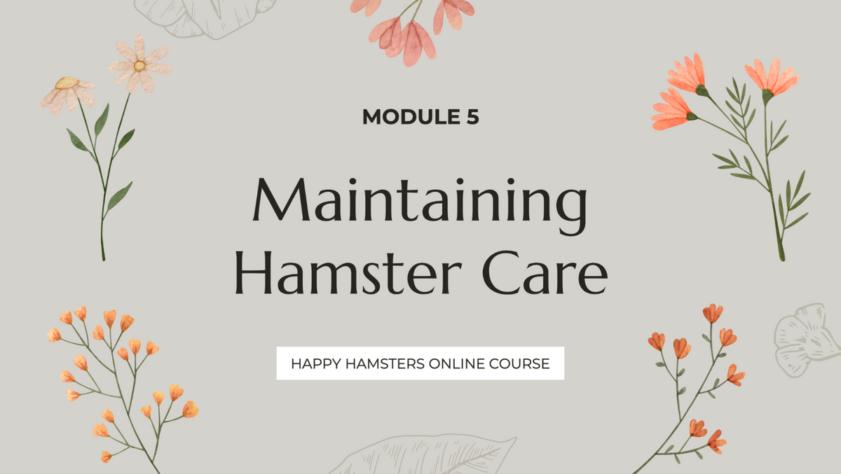 - Module 5: Maintaining Hamster Care- In this module you'll learn about how to spot-clean, hamster first aid kit, grooming, hamster health checks and more!
