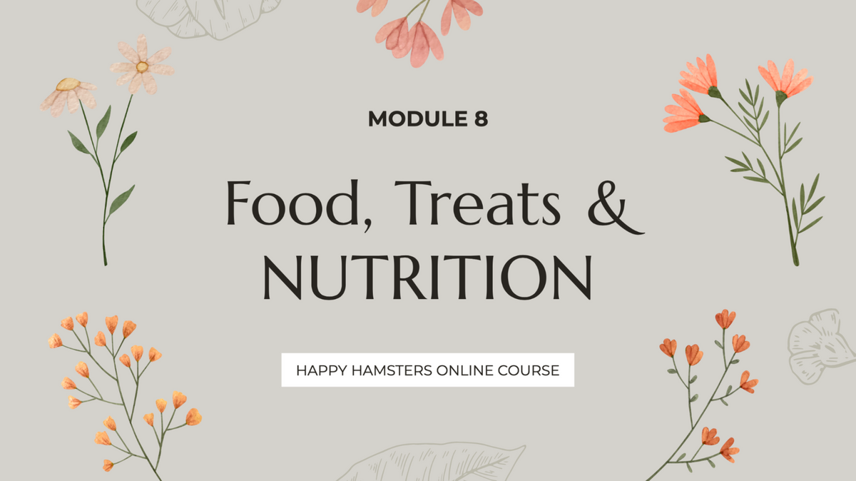- Module 8: Food, Treats, & NUTRITION- In this module we'll take a unique approach into all the necessary food groups needed in your hamsters diet, along with uncovering unhealthy treats and so much more!